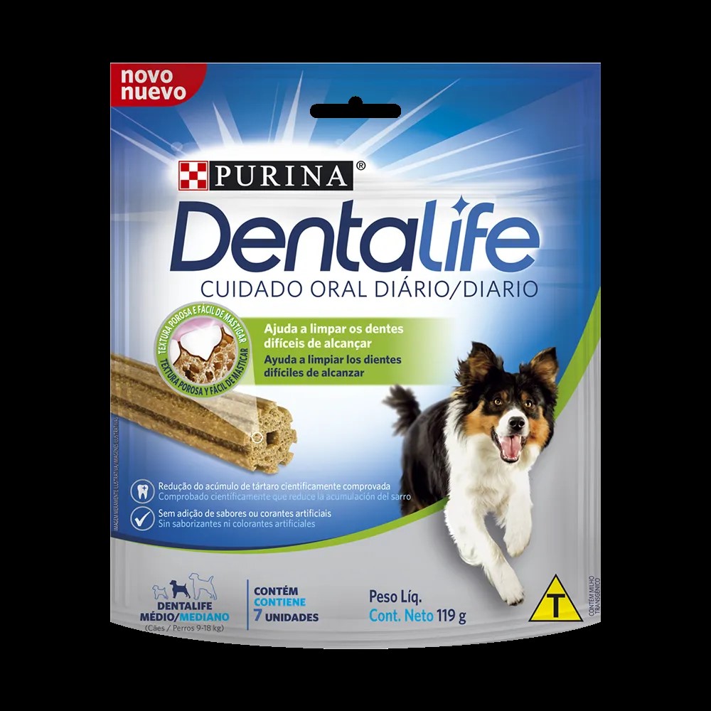 Un producto dental de uso diario, que te da la seguridad que buscas para el cuidado oral de tu perro. Purina® Dentalife® está hecho con una innovadora textura porosa, comprobada científicamente, que hace que los perros mastiquen, usando incluso esos dientes en áreas difíciles de alcanzar.